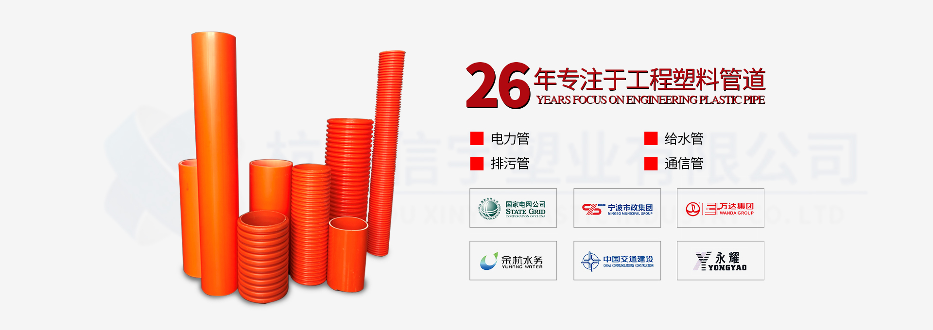 杭州信宇塑業(yè)有限公司創(chuàng)立于1993年,注冊(cè)資金10080萬(wàn)元,是一家集塑料管道研發(fā)、制造、銷(xiāo)售為一體的國(guó)家高新技術(shù)企業(yè)。公司總部坐落于美麗的杭州西子湖畔,目前在杭州市黃湖工業(yè)園、安徽郎溪新發(fā)工業(yè)園建有兩大管道生產(chǎn)基地,總占地面積11萬(wàn)平方米。此外,公司還擁有一家獨(dú)資子公司—安徽信宇管業(yè)科技有限公司。公司現(xiàn)有全自動(dòng)塑料擠出機(jī)生產(chǎn)線(xiàn)52條,高精度模具500余套,年生產(chǎn)能力達(dá)10萬(wàn)噸。公司專(zhuān)業(yè)生產(chǎn)“信宇中塑”牌HDPE給排水管、HDPE中空壁纏繞管、…